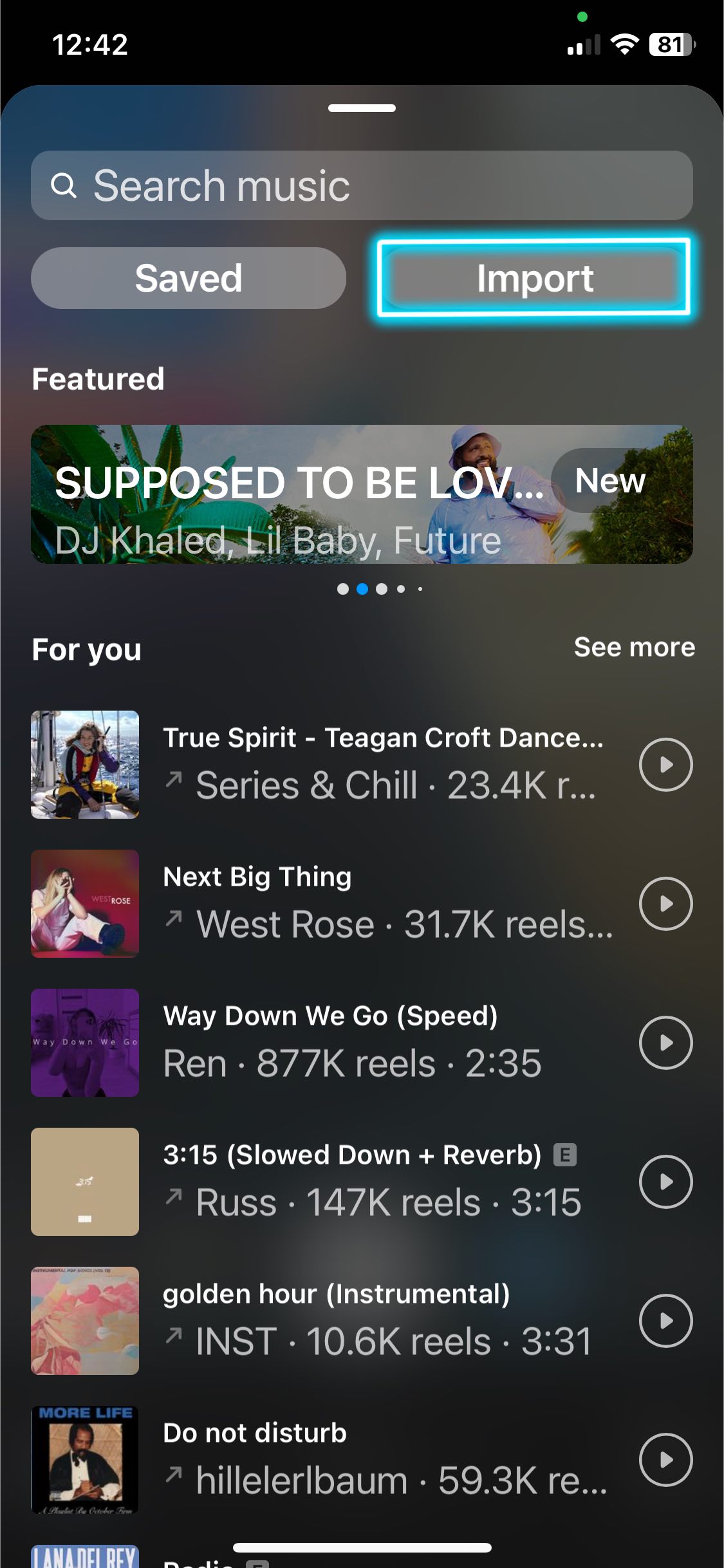 To elevate your Instagram Reels, bypass the platform’s default audio and import songs from your device.