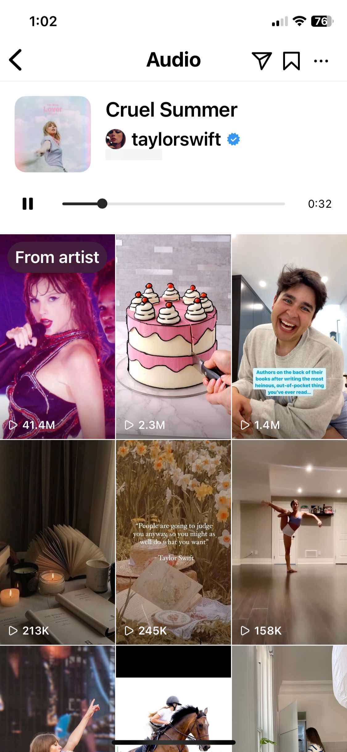 Here’s an example of how a licensed audio would appear on Instagram Reels (shout out to all the Swifties reading this):