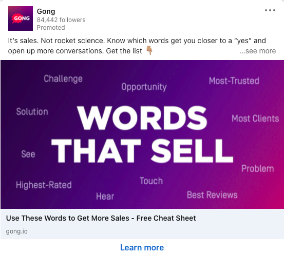 This type of ad is very similar to Google search ads. LinkedIn text ads consist of a short title, description, and a small square image.