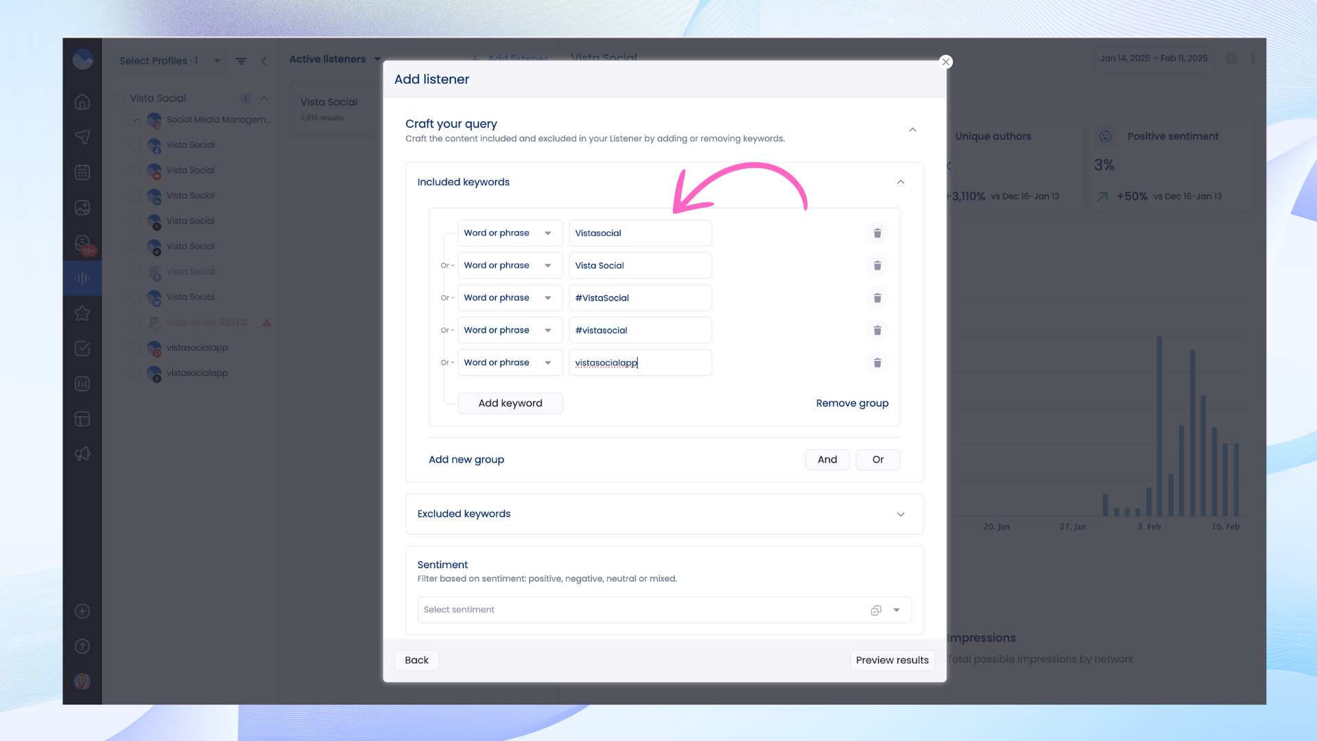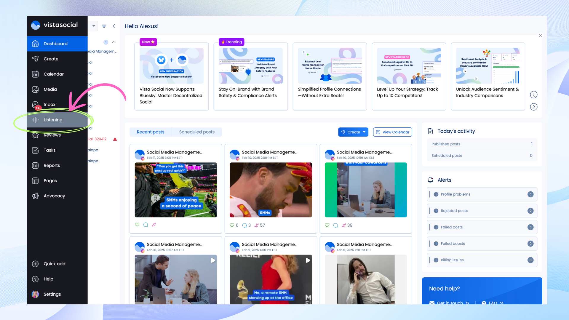 Now, with tools like Vista Social’s Premium Social Listening, anyone—from creators and small businesses to agencies—can tap into these insights without breaking the bank.