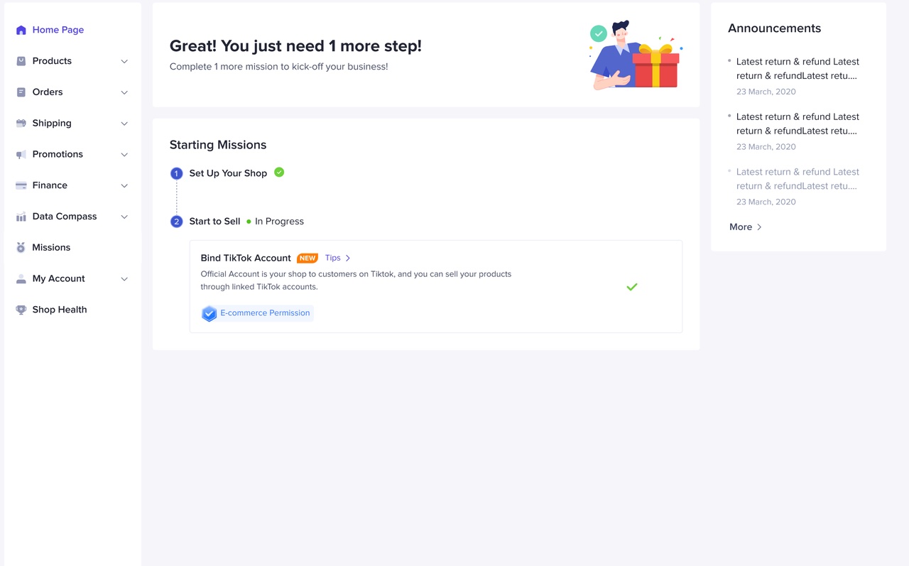 Post-onboarding, seamlessly integrate your chosen platform with your TikTok Shop account.
